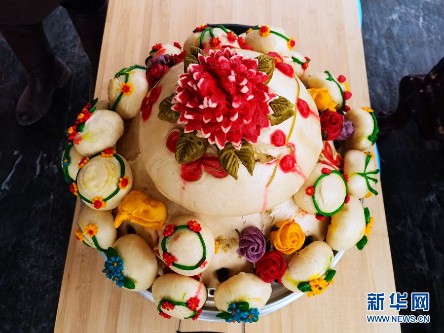 制作精美、花色鮮艷的饃饃,寄托著村民對(duì)風(fēng)調(diào)雨順、五谷豐登的美好愿望。新華網(wǎng) 童世鈺 攝