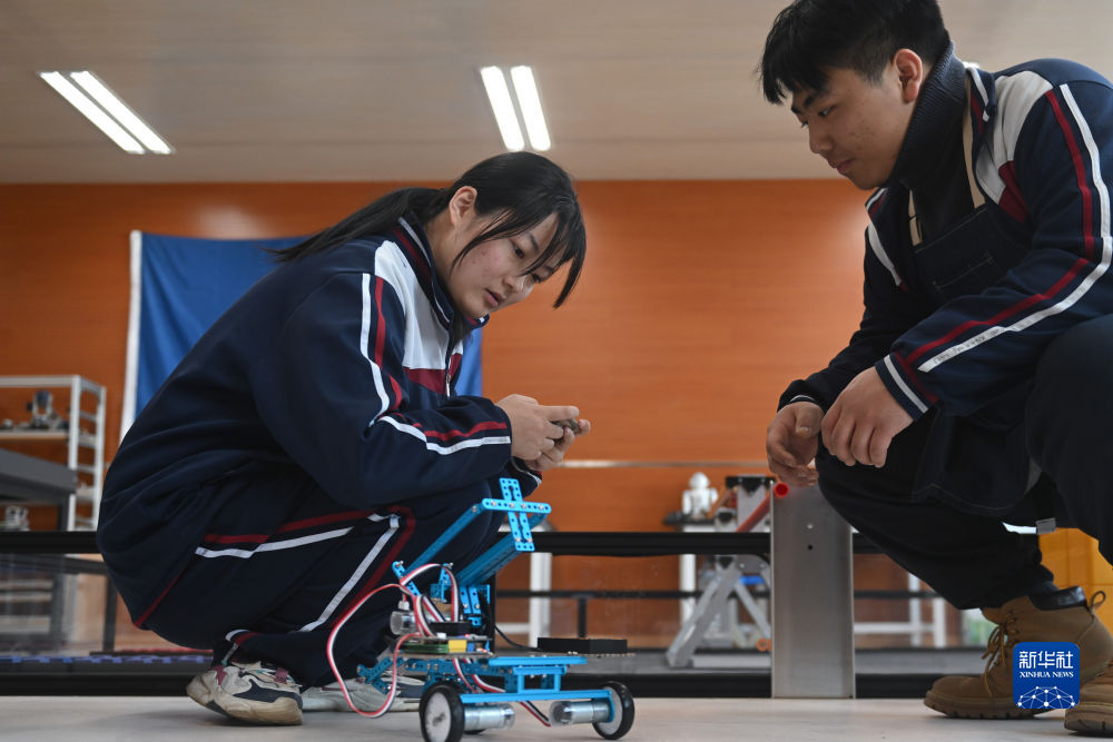 2月23日,西寧果洛中學(xué)學(xué)生在機器人教室內(nèi)操作自己組裝的機器人。新華社記者 張龍 攝