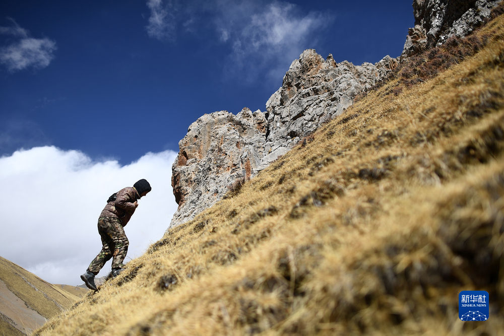 2月22日,更求曲朋在昂賽大峽谷內(nèi)巡護(hù)。新華社記者 張宏祥 攝