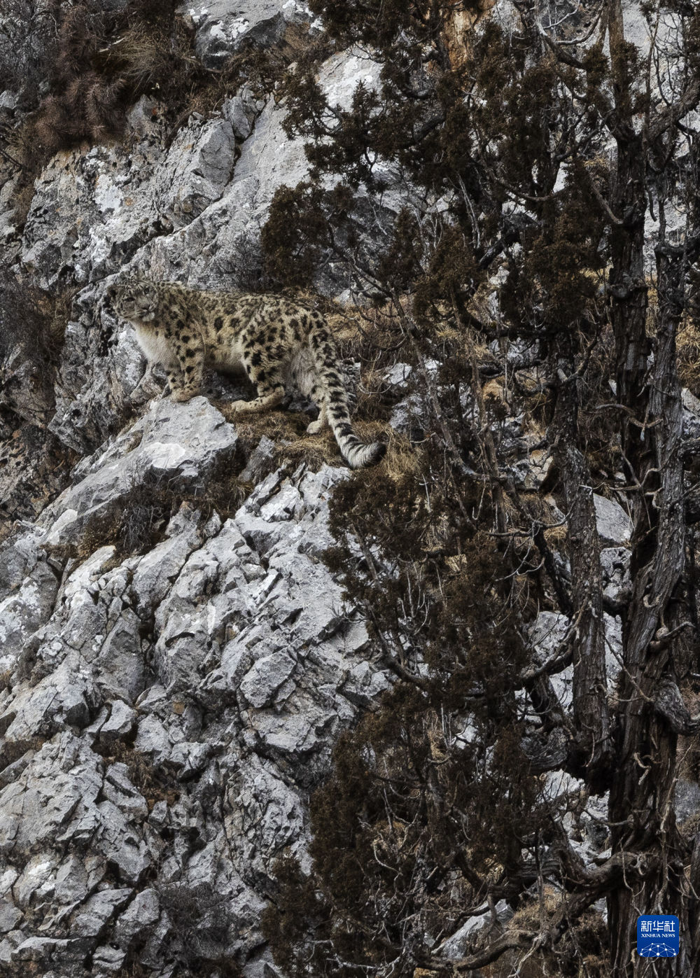 這是2月21日在昂賽大峽谷拍攝的雪豹。新華社記者 費(fèi)茂華 攝