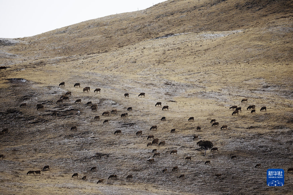 這是2月22日在昂賽大峽谷拍攝的白唇鹿。新華社記者 費(fèi)茂華 攝