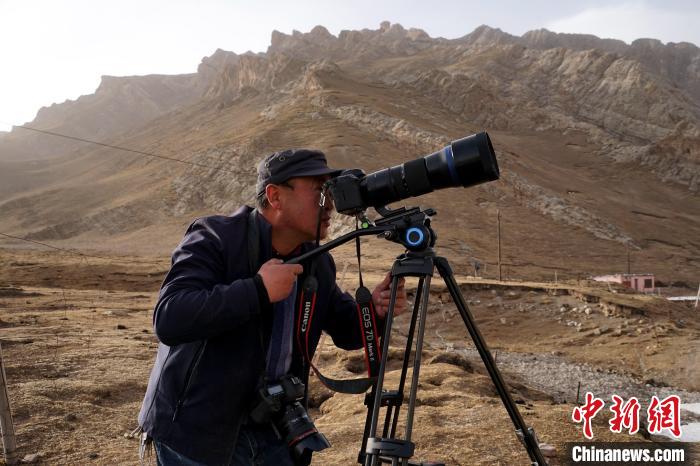 圖為蔡海勇正在拍攝野生動物。馬銘言 攝