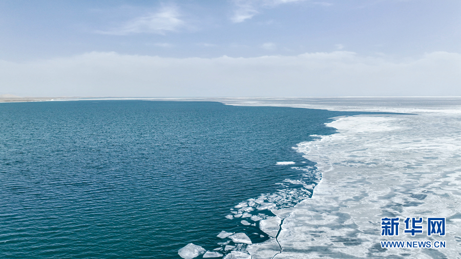 這是4月8日拍攝的青海湖開湖景觀(無人機照片)。新華網 宋忠勇 攝