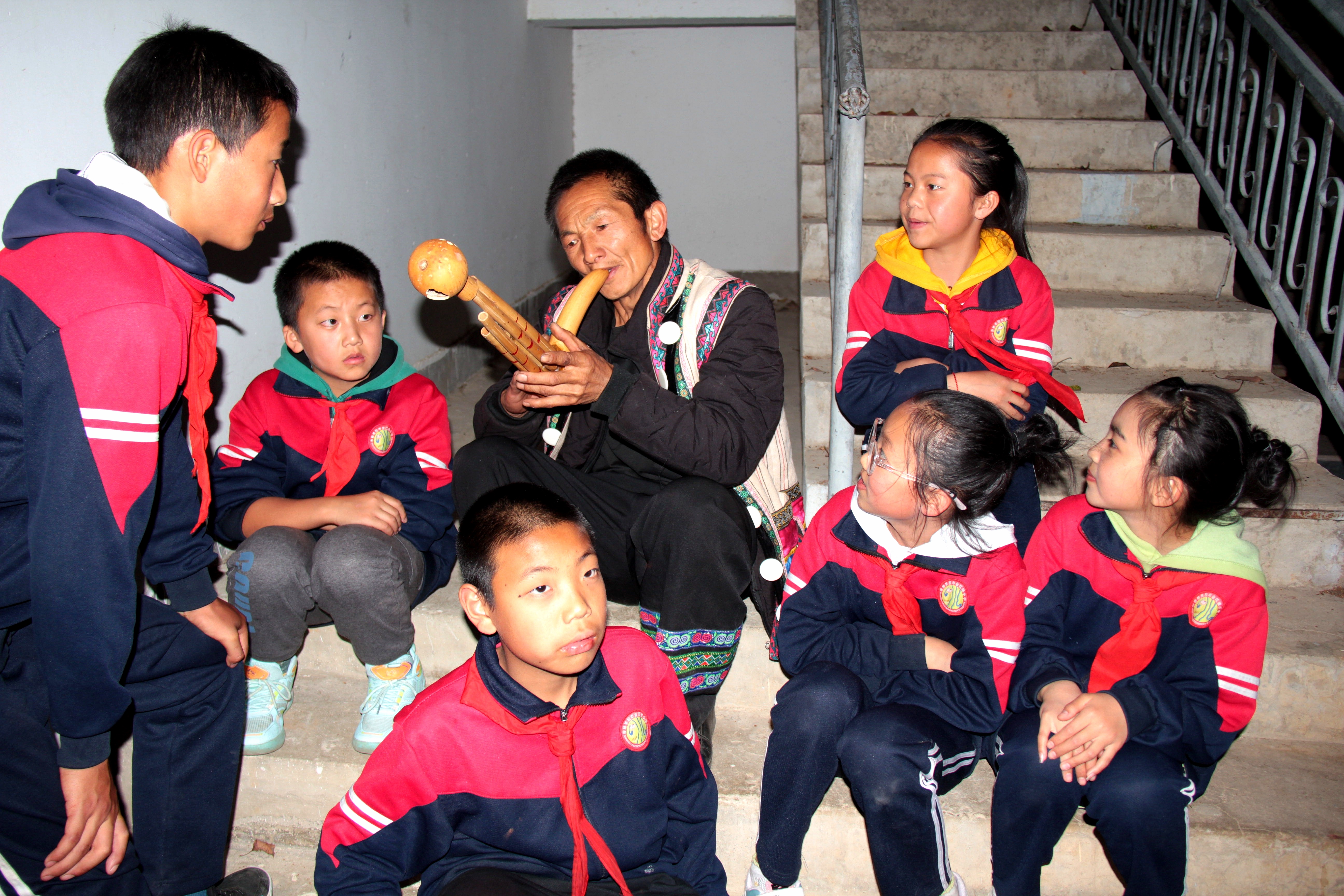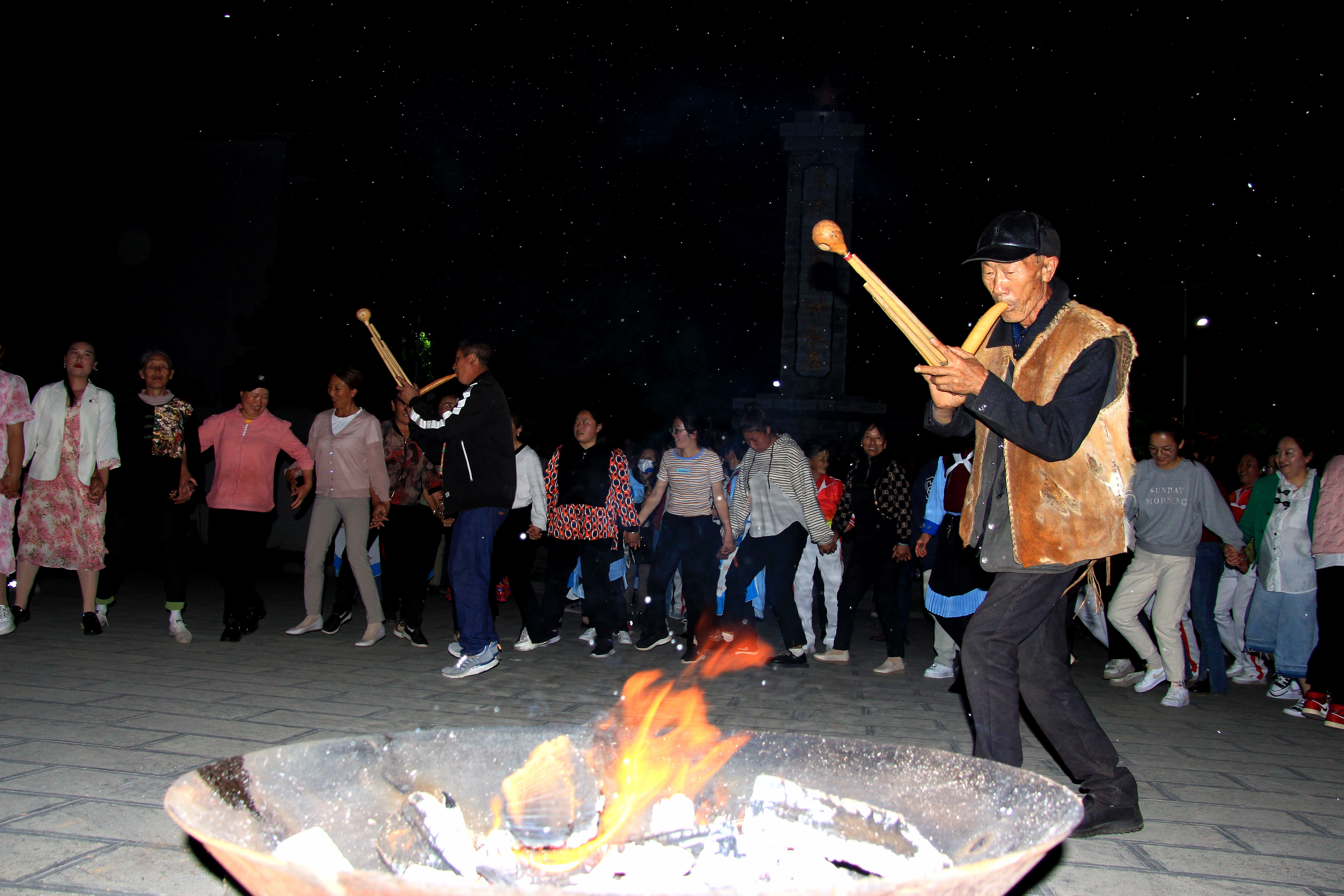 不多時,在金江鎮(zhèn)小學學生吹奏的葫蘆絲聲中,篝火晚會的序幕徐徐拉開。
