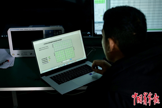4月22日,四川稻城,一位年輕的科研人員正在查看水切倫科夫探測器陣列的實時運行狀態(tài)。中青報·中青網記者 李強 攝