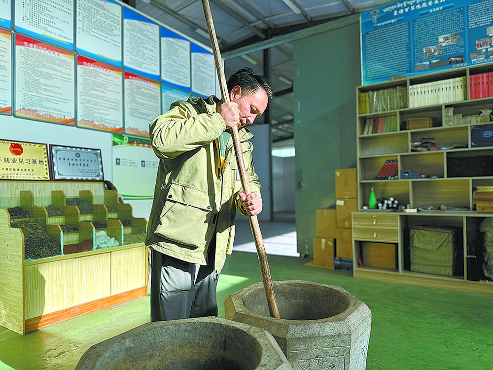 鬧丁多杰正在錘磨香料。張子涵 攝