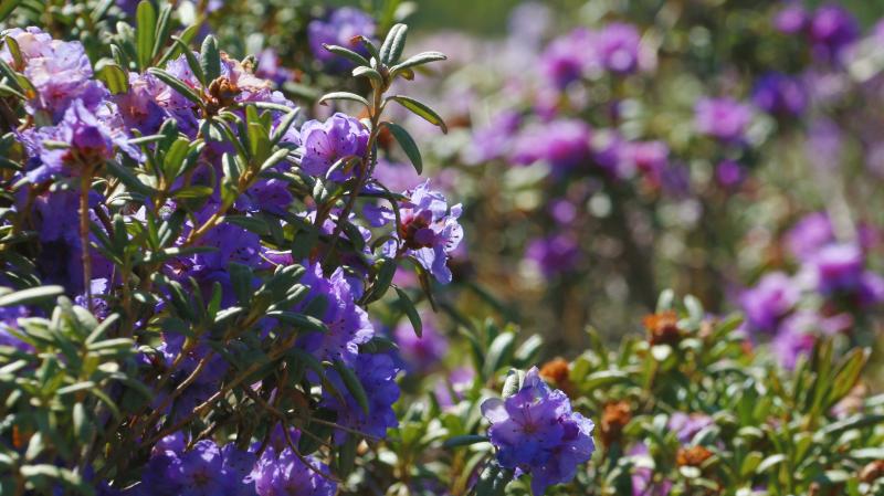 夏天,位于香格里拉市小中甸鎮(zhèn)的杜鵑花海競相綻放,紫色、粉色的花朵開成了海,與藍天白云遙相呼應,藏房點綴其間,美不勝收。每當花季,當?shù)氐睦习傩赵诨ê_厰[起特色美食,牦牛酸奶、苦蕎粑粑、酥油茶等美食供游客享用,坐在花海邊,品嘗當?shù)靥厣朗?,是這個夏天小中甸花海獨有的浪漫。