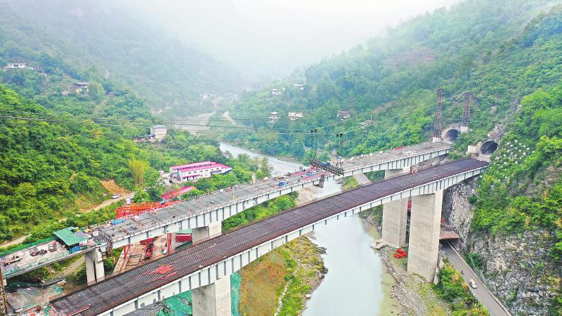 桑園子大橋合龍施工現(xiàn)場(chǎng)。中國五冶集團(tuán)供圖