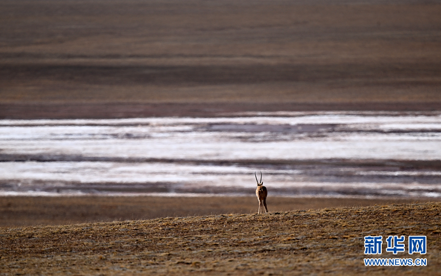 一只雄性藏羚羊在可可西里活動。新華社記者 張宏祥 攝