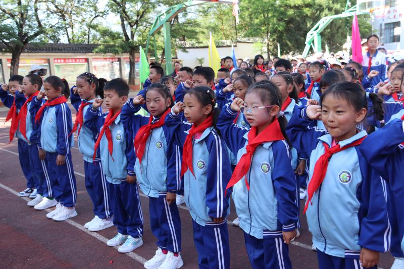 上午8點(diǎn)30分,活動正式開始,升國旗、唱國歌、行隊禮,孩子們激動的心情溢于言表。在新隊員入隊儀式上,共有138名學(xué)生加入光榮的中國少年先鋒隊組織,老隊員們?yōu)樗麄兣宕骷t領(lǐng)巾,鮮艷的紅領(lǐng)巾在新隊員的胸前飄揚(yáng),也在燦爛的朝陽下熠熠閃光。隨后,該校對獲得“2022—2023年度“優(yōu)秀少先隊員”“優(yōu)秀班干部”“紅領(lǐng)巾一星獎?wù)聵s譽(yù)”的同學(xué)進(jìn)行了表彰。最后,學(xué)校舞蹈社團(tuán)的孩子們?yōu)榇蠹規(guī)砭实母栉璞硌荩颜麄€活動推向高潮。 (張燕 攝影報道)