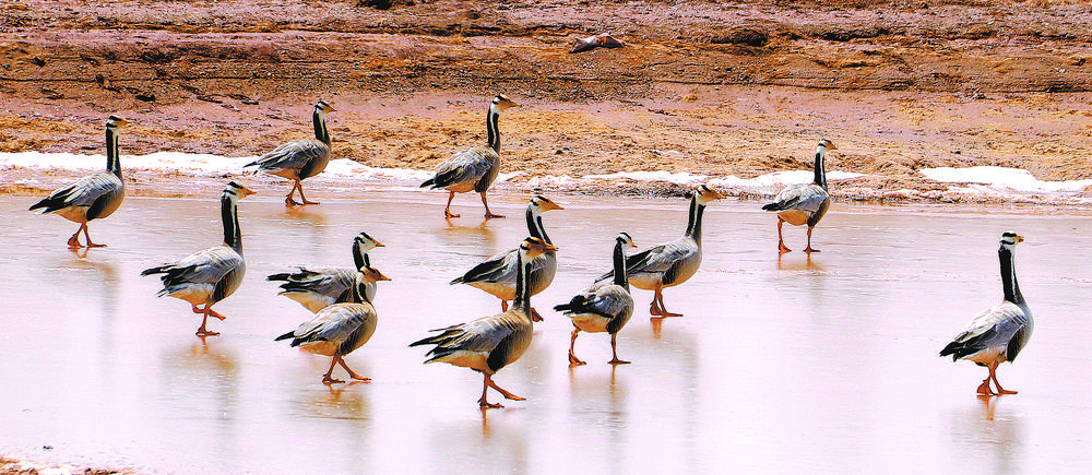 初夏的果洛藏族自治州瑪多縣,大大小小的湖泊如夜空中的星宿在閃爍,扎陵湖、鄂陵湖湖水湛藍(lán),波光粼粼。草原上藏野驢歡快奔跑,一群群斑頭雁在湖畔草地間悠閑覓食。