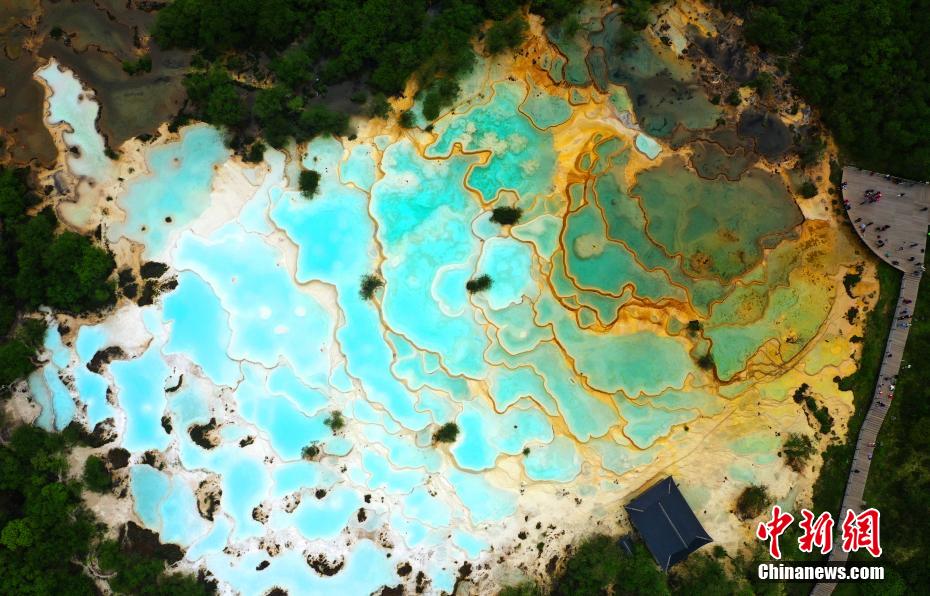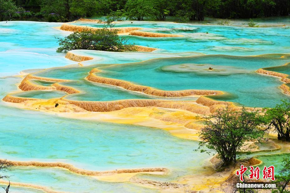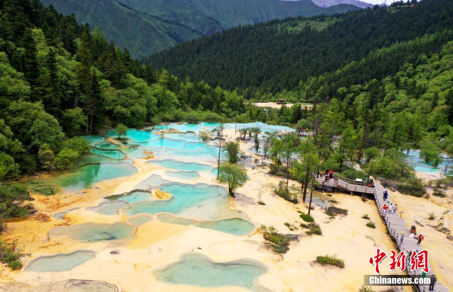 6月19日,初夏時(shí)節(jié),世界自然遺產(chǎn)黃龍風(fēng)景名勝區(qū)風(fēng)景如畫,吸引眾多游客觀光游玩。