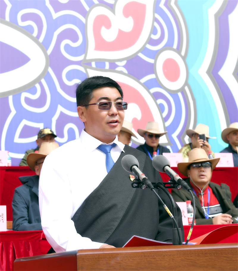 州委常委、香格里拉市委書記楊梓江致辭。他說,黨的十八大以來,在黨中央的親切關(guān)懷下,在省委、省政府和州委、州政府的堅強領(lǐng)導下,香格里拉市堅持推動高質(zhì)量發(fā)展,如期實現(xiàn)脫貧摘帽,進入“高速時代”“5G時代”,即將在全國涉藏州縣中率先進入“動車時代”,各項事業(yè)取得長足進步,各族群眾的獲得感、幸福感、安全感明顯增強,世界的“香格里拉”正逐步從藍圖走向現(xiàn)實。他表示,舉辦此次賽馬節(jié),是香格里拉市實施“潤心工程”文化育人行動,充分挖掘節(jié)慶文化資源,唱響主旋律、弘揚正能量、提振精氣神,以文化人、以文育人的重要舉措。期望通過舉辦此次活動,有力促進各民族交往交流交融,有力促進“以文塑旅、以旅彰文”取得新成效,有力促進大滇西旅游環(huán)線、大香格里拉旅游圈建設(shè)取得新進展。