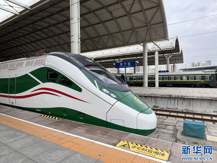 7月1日,復興號動車組從西寧站緩緩駛出。新華網(wǎng) 魚昊 攝
