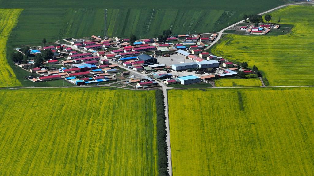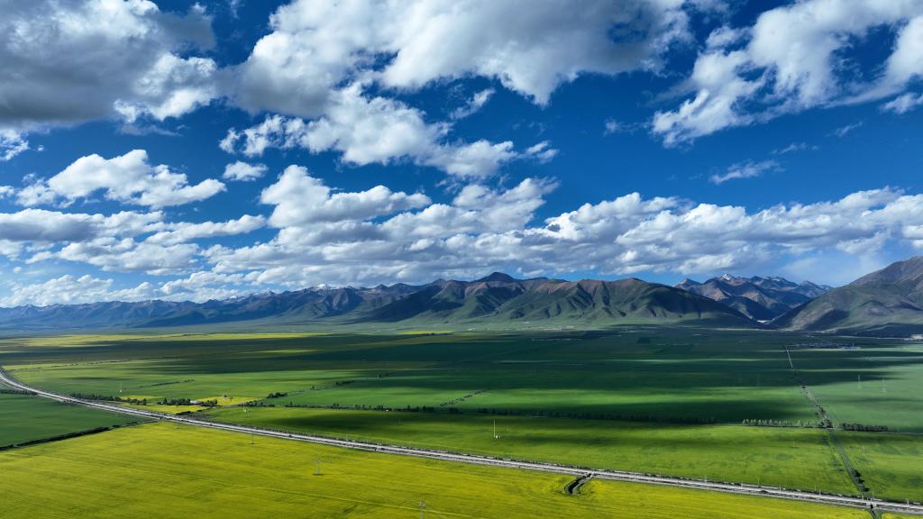 夏日,在位于祁連山腹地的青海省海北藏族自治州門(mén)源回族自治縣境內(nèi),油菜花競(jìng)相綻放,花海、雪山、草原共同組成色彩斑斕的祁連山夏日畫(huà)卷。