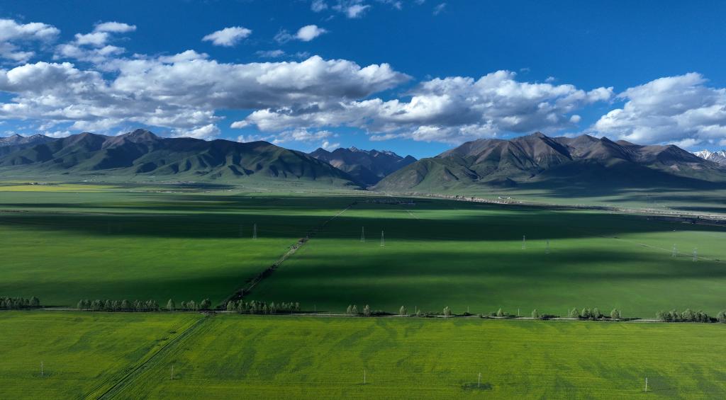 這是7月3日拍攝的門(mén)源縣境內(nèi)風(fēng)光(無(wú)人機(jī)照片)。新華社記者 韓方方 攝