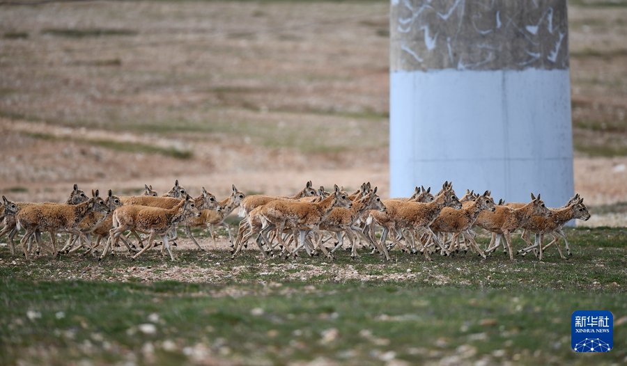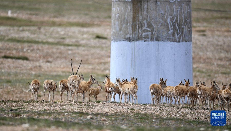 7月28日,一群藏羚羊準(zhǔn)備通過青藏鐵路五北大橋。新華社記者 韓方方 攝