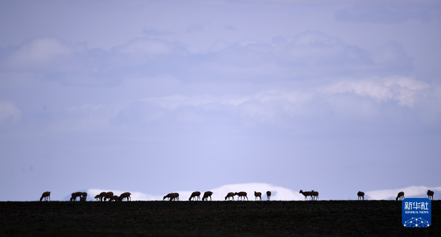 7月28日,一群藏羚羊在可可西里境內(nèi)活動。新華社記者 韓方方 攝