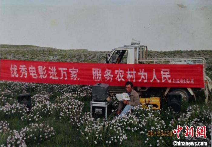 資料圖為許國(guó)強(qiáng)在海南州共和縣草原放映電影。受訪者供圖