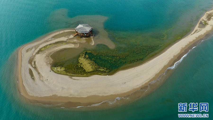 這是8月2日拍攝的青海湖二郎劍景區(qū)二郎劍半島。(無人機照片)新華網(wǎng) 郭勇良 攝