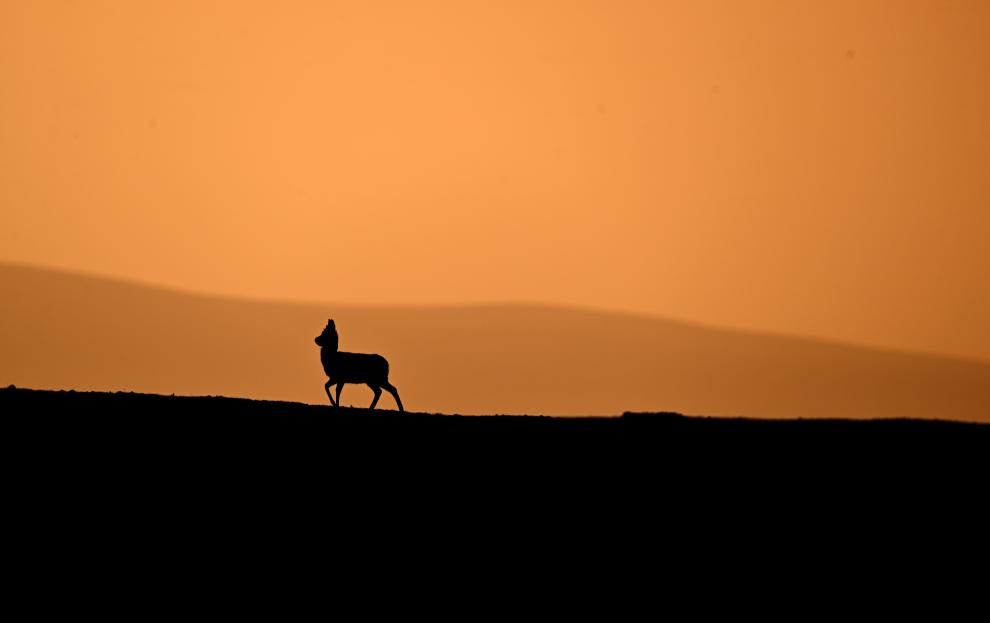 一只雌性藏羚羊在可可西里卓乃湖區(qū)域活動(6月18日攝)。新華社記者 張宏祥 攝