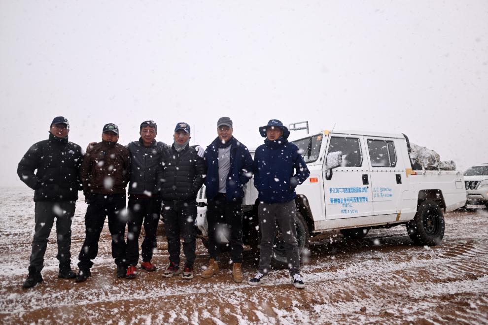 可可西里管理處卓乃湖保護(hù)站隊員在前往卓乃湖保護(hù)站途中遭遇大雪(6月16日攝)。新華社記者 張宏祥 攝