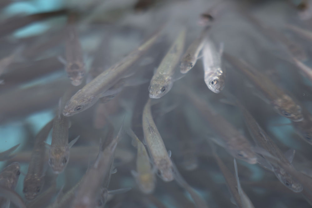 青海省海北藏族自治州剛察縣沙柳河畔的湟魚(yú)家園,經(jīng)過(guò)一年培育的湟魚(yú)魚(yú)苗等待放流(2023年7月7日攝) 李寧 攝