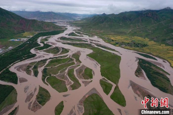 8月22日,航拍青海省玉樹藏族自治州囊謙縣境內(nèi)的扎曲河網(wǎng)狀水系。扎曲河是瀾滄江上游主要干流之一,縱橫交錯的河水在群山中蜿蜒流淌,形成獨特的高原景觀。
