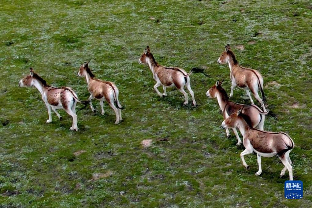 長江源區(qū)的藏野驢(7月26日攝,無人機(jī)照片)。 新華社記者 劉詩平 攝