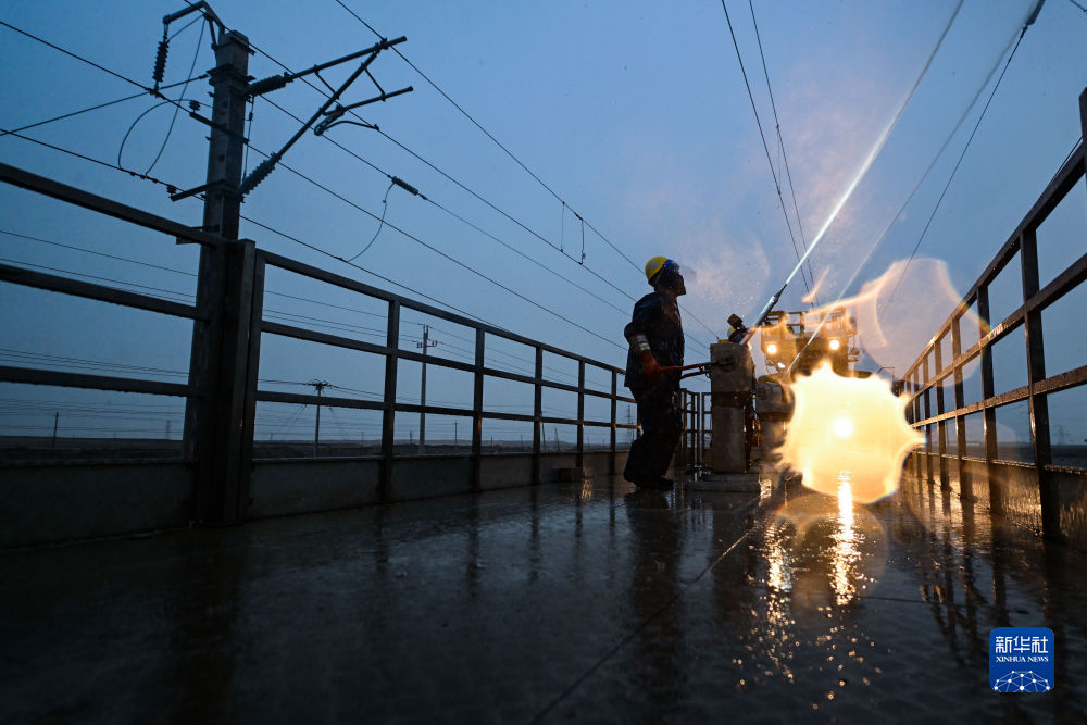 “針對(duì)‘萬丈鹽橋’所處鹽湖的特殊路基狀況,在設(shè)備的整治上,我們堅(jiān)持‘一點(diǎn)都不能差,差一點(diǎn)都不行’的線路設(shè)備維修理念。”格爾木工務(wù)段主管生產(chǎn)副段長(zhǎng)王楨睿說,為了全面提高旅客列車通過的舒適度,格爾木工務(wù)段對(duì)無縫線路落實(shí)精細(xì)化改道,嚴(yán)格落實(shí)直線地段誤差±0.5mm、曲線地段-1.5mm至-0.5mm以內(nèi)的技術(shù)標(biāo)準(zhǔn);在道岔方向軌距全方位整治的基礎(chǔ)上,重點(diǎn)突出“岔心全斷面打磨”整治方法,極大地提升了動(dòng)車通過道岔能力和旅客乘車舒適度。