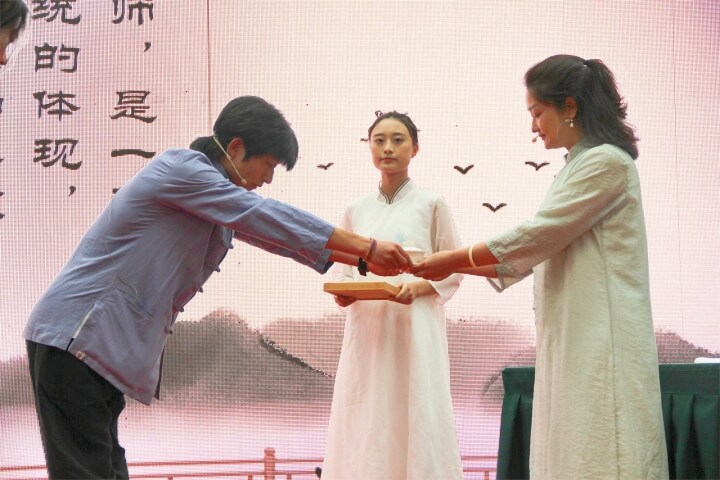 隨后,教師和同學(xué)們集體宣讀誓言,慷慨洪亮的聲音在宣告他們有信心做好一名稱(chēng)職的人民教師、優(yōu)秀的學(xué)生。學(xué)生代表的發(fā)言充滿(mǎn)朝氣與活力,胸懷理想與信念,展現(xiàn)出同學(xué)們磨礪自我、奮斗青春的信心與抱負(fù)。教師代表的發(fā)言如良師益友娓娓道來(lái),用榜樣的力量和長(zhǎng)者的親切,為同學(xué)們指點(diǎn)迷津、加油鼓勁,激勵(lì)同學(xué)們胸懷遠(yuǎn)志、堅(jiān)毅卓絕、奮發(fā)進(jìn)取、只爭(zhēng)朝夕!隨后,同學(xué)們?cè)谥鞒秩说闹敢旅C整衣冠、向老師鞠躬行禮,寓意此后正式踏入學(xué)門(mén),明志于四方。