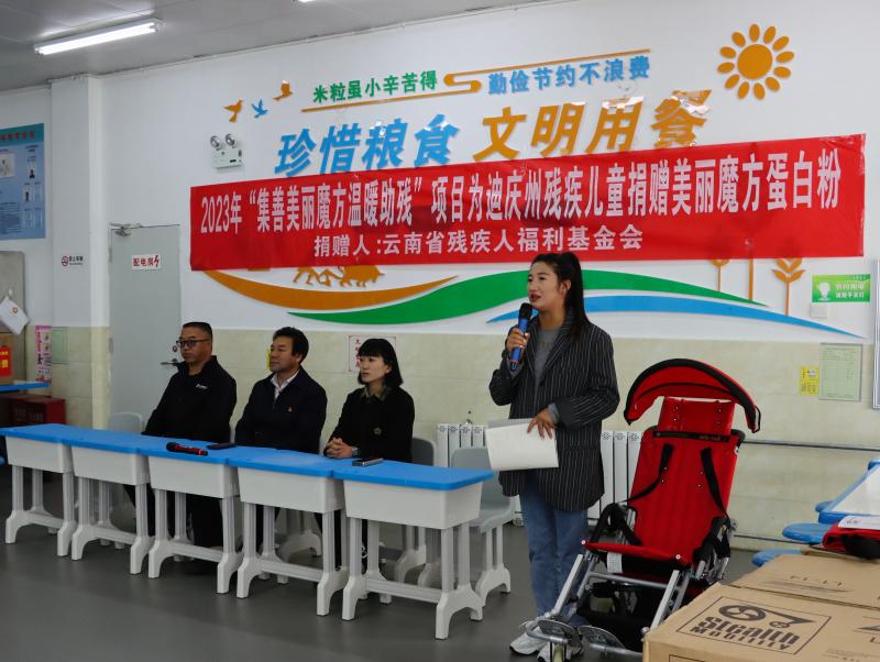 近日,云南省殘疾人福利基金會(huì)為我州康復(fù)中心和香格里拉市特殊教育學(xué)校殘疾兒童捐贈(zèng)了12架兒童輪椅和178罐美麗魔方蛋白粉。這是自云南省殘疾人福利基金會(huì)將我州列為2023年“集善美麗魔方溫暖助殘”項(xiàng)目點(diǎn)后的第一批捐贈(zèng)。