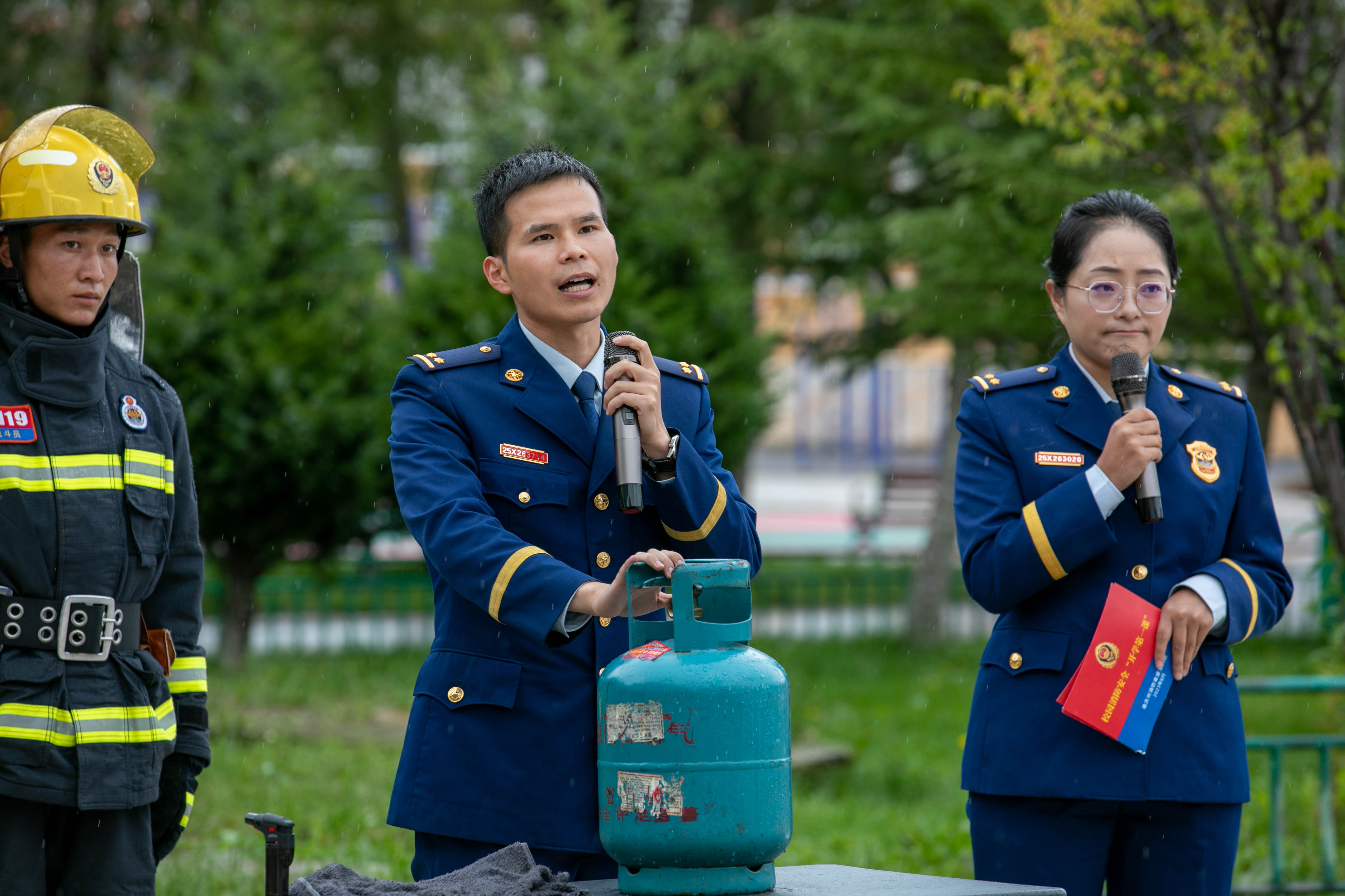 其間,支隊(duì)宣傳員還帶領(lǐng)學(xué)生們 “零距離”參觀體驗(yàn)消防車輛和器材裝備,對(duì)搶險(xiǎn)救援車、液壓破拆系統(tǒng)、手抬機(jī)動(dòng)泵等消防器材裝備進(jìn)行現(xiàn)場(chǎng)講解,讓師生了解器材裝備的用途和使用方法?;顒?dòng)中還開展了真火撲救實(shí)操演練及應(yīng)急疏散逃生實(shí)戰(zhàn)演練。