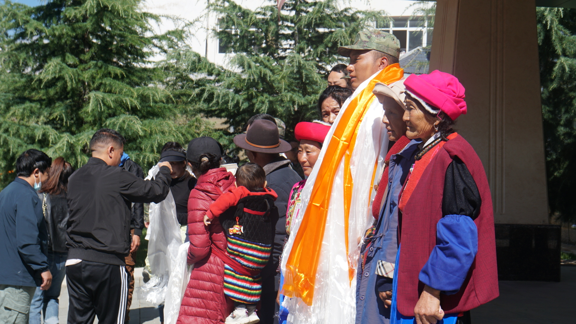 圖為歡送儀式上香格里拉市人民政府征兵辦公室、香格里拉市人武部負責人與新兵話別。