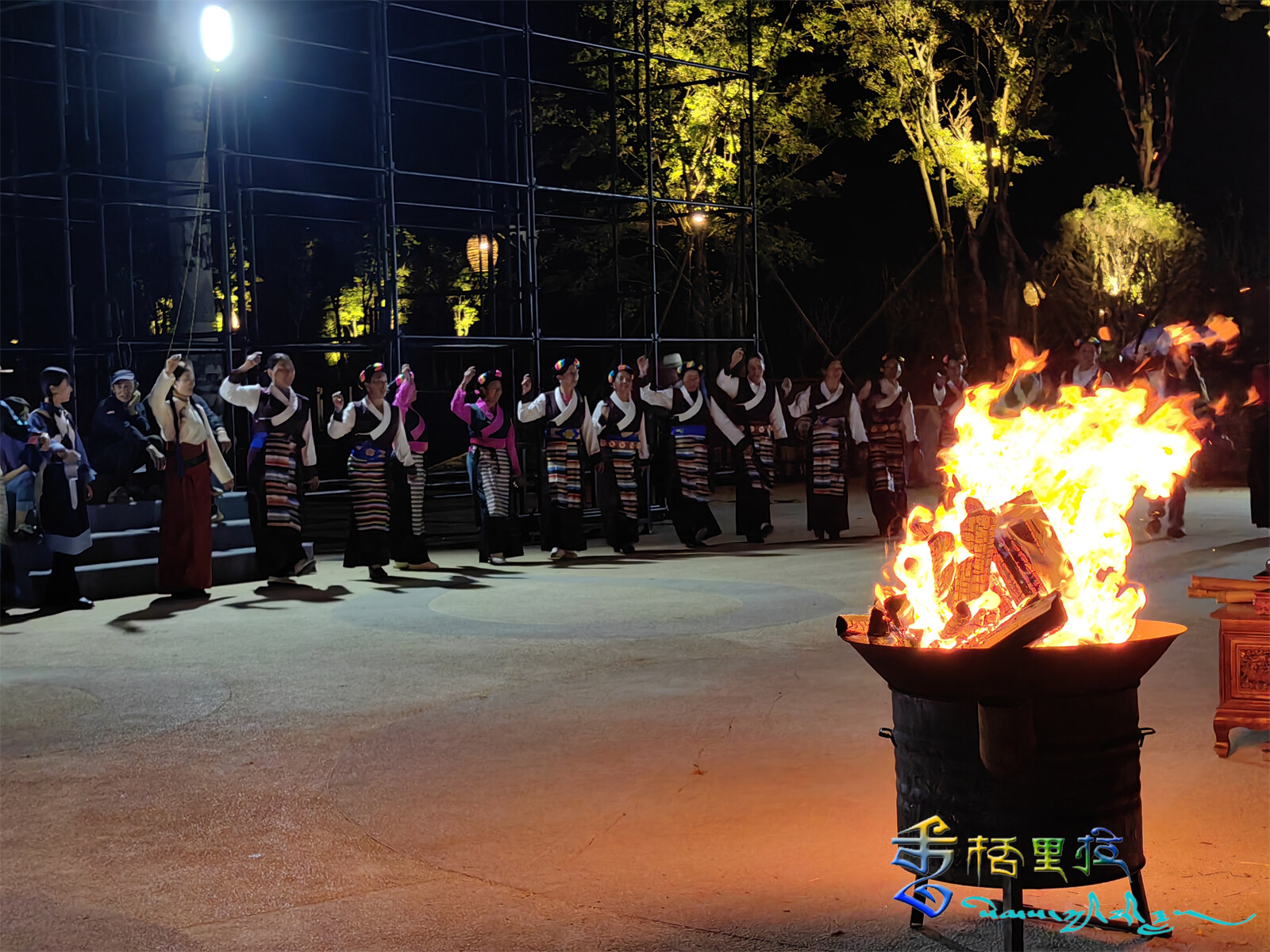 夜幕降臨,篝火熊熊,人們手拉手,與八方來客相聚在廣場(chǎng)上。歌聲慶豐收、舞曲頌黨恩,篝火映紅了臉頰,笑容傳遞著喜悅,傳遞著對(duì)來年生活的殷殷期盼。