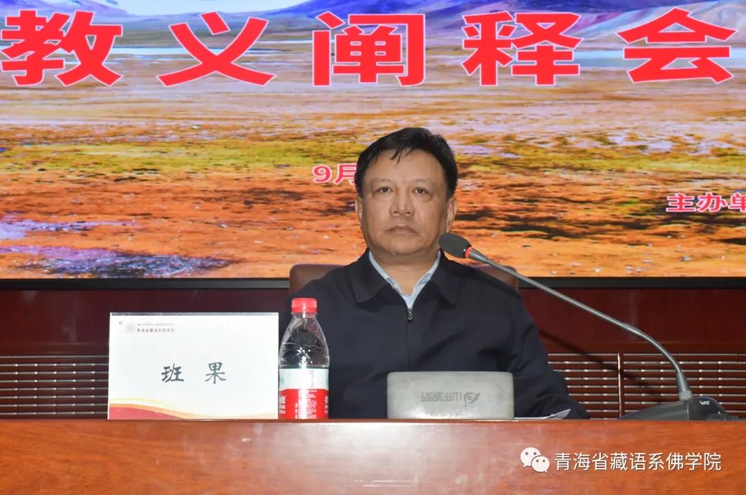 此次會議由青海省藏語系佛學院、三江源生態(tài)保護基金會、青海省藏傳佛教研究中心聯(lián)合舉辦。省委常委、省委統(tǒng)戰(zhàn)部部長班果出席并講話,第十三屆全國人大民族委員會副主任、中央民族大學教授丹珠昂奔,三江源生態(tài)保護基金會理事長鄧本太,中國藏學研究中心原副總干事洛桑靈智多杰,省政協(xié)副主席、省藏語系佛學院院長仁青安杰等領導出席。