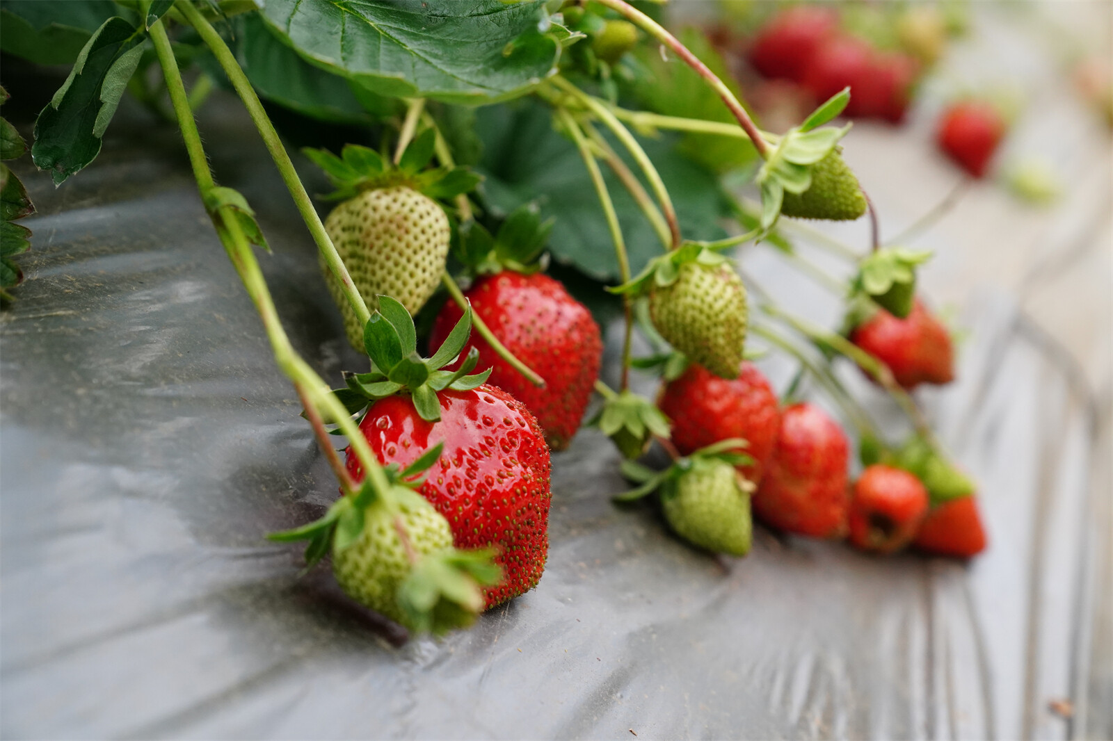 國慶中秋長假,到城郊進(jìn)行采摘成為不少市民的選擇。在小中甸鎮(zhèn)聯(lián)合村的歡喜草莓采摘園大棚里,草莓已經(jīng)掛滿地頭,圓潤飽滿的果子和綠葉相映成景。