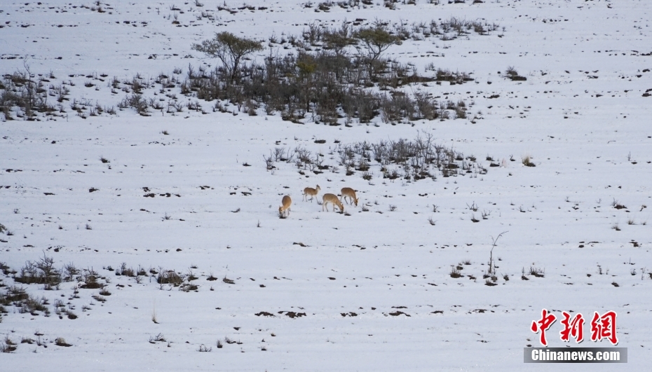 12日,在青海湖北岸的青海省海北藏族自治州剛察縣哈爾蓋“羚羊小鎮(zhèn)”,成群的普氏原羚在雪中覓食、漫步。[詳細(xì)] -