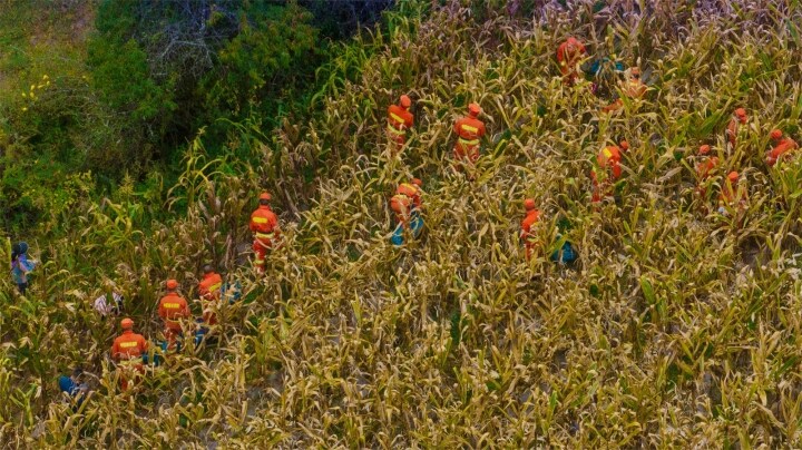 迪慶州森林消防大隊為老鄉(xiāng)搶收玉米