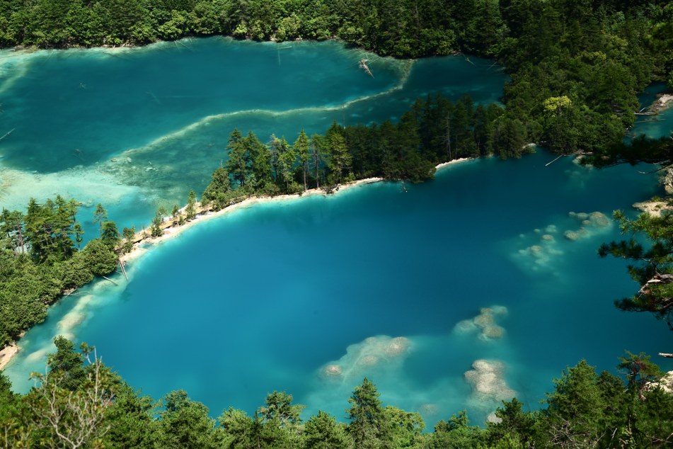 今的火花海,其修復(fù)方案得到聯(lián)合國(guó)教科文組織肯定支持,榮獲四川省“科技進(jìn)步一等獎(jiǎng)”。圖據(jù)九寨溝管理局