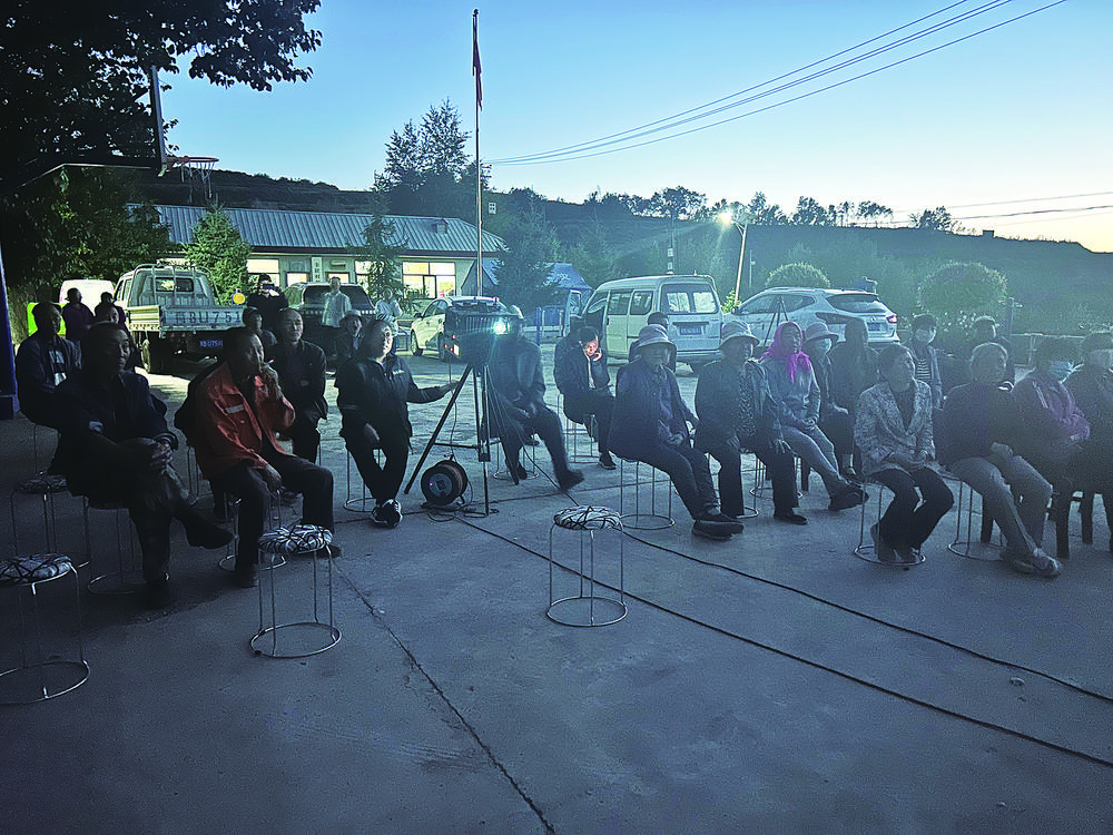 吳家洼村。光影下,村民們的目光齊齊聚集在正播放《長安三萬里》的熒幕上,黃得梅坐在設(shè)備旁和村民們一同觀看,時不時有幾個村民過來和她聊幾句。