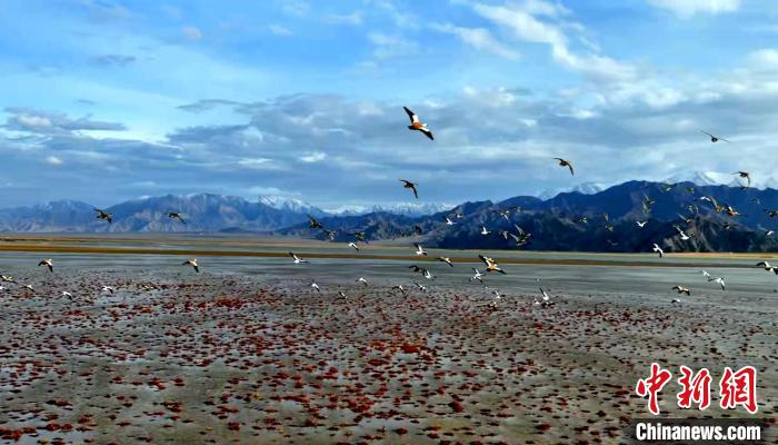 圖為多種野生鳥類在濕地公園上空飛翔。 海西州融媒體中心供圖