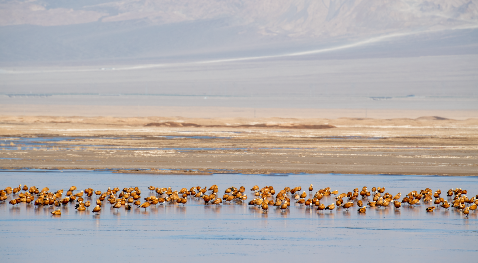數(shù)千只赤麻鴨齊聚青海茫崖尕斯庫(kù)勒湖濕地。王小炯 攝