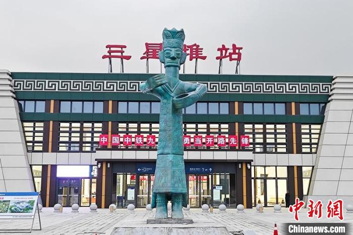 三星堆站位于德陽(yáng)廣漢市南興鎮(zhèn)與向陽(yáng)鎮(zhèn)交界處,距廣漢市區(qū)約5公里,距三星堆遺址約5公里,站場(chǎng)規(guī)模為2臺(tái)4線。車(chē)站廣場(chǎng)上,豎立著一尊青銅立人像,站房外立面將三星堆出土的青銅人面具抽象為車(chē)站整體造型,局部點(diǎn)綴回字紋雕花的仿古元素。同時(shí),裝飾裝修深化設(shè)計(jì)中將外立面檐口褐色調(diào)整為青銅色,彰顯了三星堆深遠(yuǎn)的人文背景。“車(chē)站站房以三星堆出土的青銅人面具造型為靈感?!敝需F九局成蘭站房項(xiàng)目部總工程師楊禮銘表示,施工過(guò)程中對(duì)鋁板內(nèi)部龍骨布置及鋁板分格進(jìn)行了數(shù)次優(yōu)化,順利完成站房裝飾裝修工程,投用后將成為當(dāng)?shù)匾坏貥?biāo)性建筑。