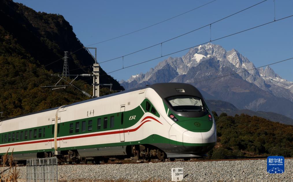 11月26日,列車從玉龍雪山腳下駛過。新華社記者 邢廣利 攝