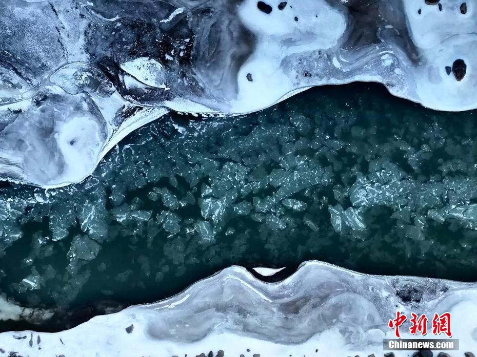 小雪節(jié)氣過后,受冬季冷空氣影響,青海省海北藏族自治州祁連縣境內(nèi)的黑河上游開始出現(xiàn)流凌。攝影師通過無人機鏡頭從空中俯瞰,河道中成片的冰凌順河而下,在祁連山中蜿蜒曲折。