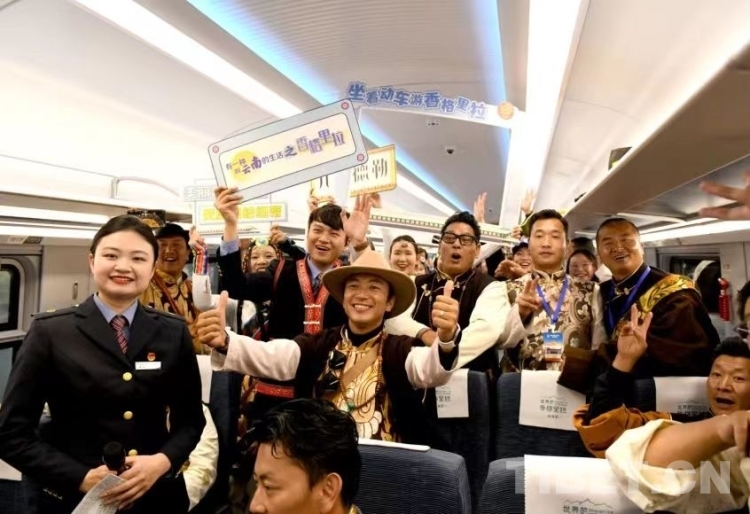 圖為麗江至香格里拉站的首發(fā)列車運營時各族群眾慶祝的景象 攝影:李東紅