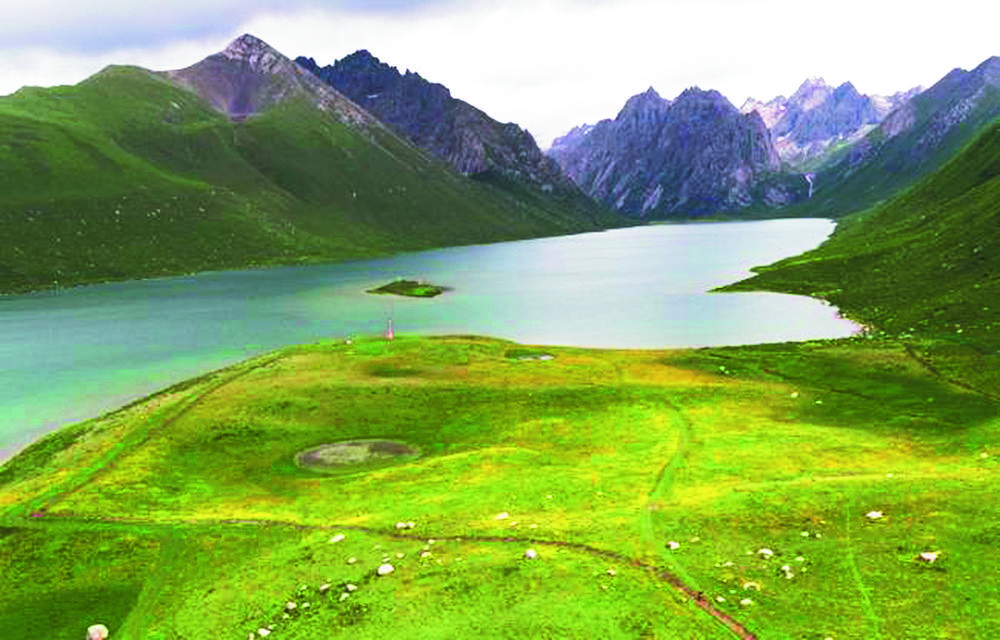 拆除棧道后,年保湖周邊植被開始恢復(fù)。果洛州生態(tài)環(huán)境局供圖