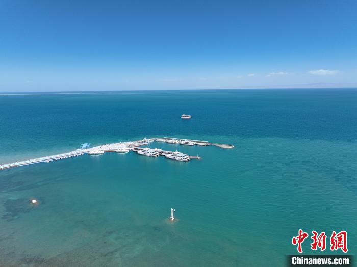 資料圖為航拍海南州境內青海湖二郎劍碼頭。(無人機照片)祁增蓓 攝