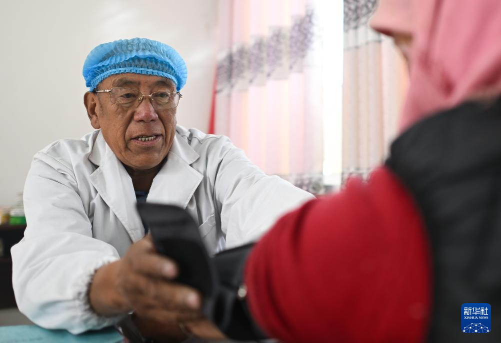 積石山6.2級(jí)地震發(fā)生后,青海省海東市循化撒拉族自治縣道幃藏族鄉(xiāng)牙木村部分房屋出現(xiàn)損毀,當(dāng)?shù)卣谝粫r(shí)間在牙木村建設(shè)安置點(diǎn)。因?yàn)槟贻p時(shí)就讀于衛(wèi)生學(xué)校、掌握基本的醫(yī)療技能,60歲的完么仁增成為安置點(diǎn)的義務(wù)衛(wèi)生員,為村民量血壓并普及健康知識(shí)。“我想做些力所能及的事幫助鄉(xiāng)親們?!蓖昝慈试稣f。